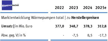 [ÖSTERREICH | 21. November 2025 ] Gegen Ende 2024 wird das großzügige Förderprogramm der Bundesregierung „Raus aus Öl & Gas“ völlig überraschend gestoppt, weil der Fördertopf angeblich ausgeschöpft wurde. Der „harte Entzug“ bleibt nicht folgenlos. Laut aktuellem BRANCHENRADAR Wärmepumpen in Österreich schrumpfen die Erlöse von Herstellern und Generalvertretungen im Jahr 2025 voraussichtlich um gut 17 Prozent gegenüber Vorjahr auf rund 313 Millionen Euro, wobei die Kontraktion ausschließlich Heizungswärmepumpen betrifft. Die im Oktober startende, mit weitaus geringeren Fördersätzen ausgestattete „Sanierungsoffensive 2026“ wird daran nicht viel ändern.